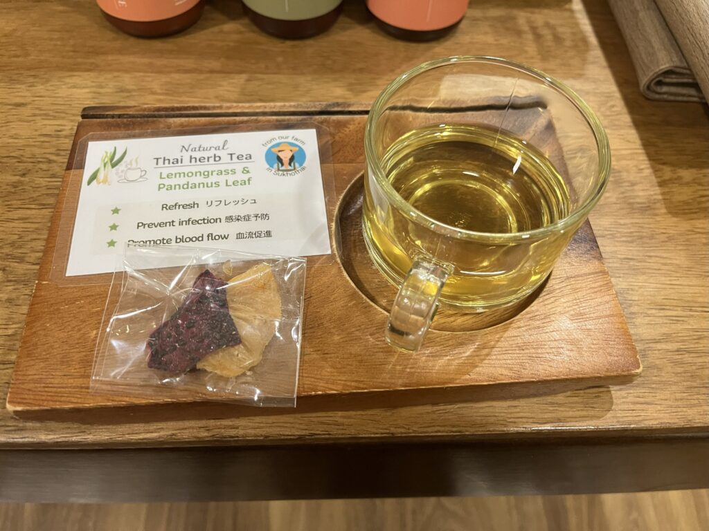 1時間のタイマッサージと30分のヘッドマッサージ、しっかりと全身をもみほぐしてくれました。無駄なおしゃべりもなくリラックスした雰囲気であっという間に1時間半が経過し、施術終了。凝り固まった身体がのびて、足もなんだか軽くなった印象です。