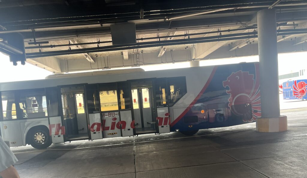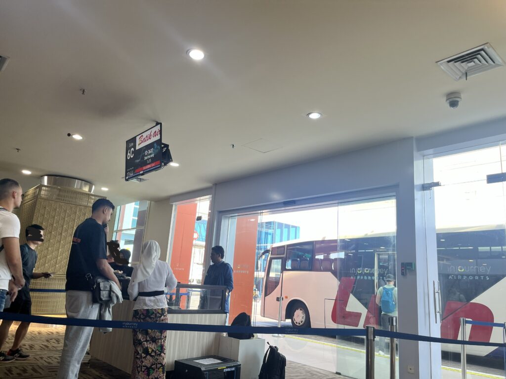 列に並びゲートを通過し、待機しているバスに乗り込みます。(ちなみにこの時点で出発時刻を過ぎています←)
