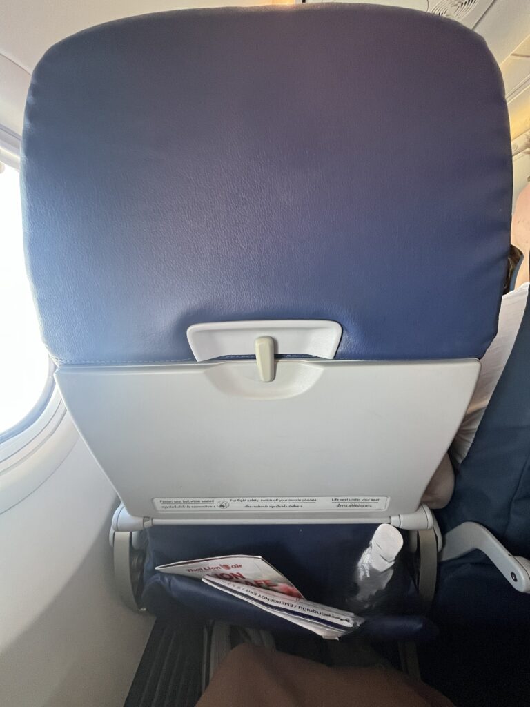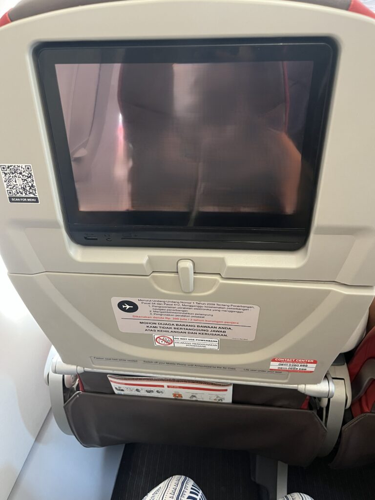 ライオンエア座席には機内エンタメ用モニターが設置されていたものの画面はつかずでした。座席は行きのライオンエアよりもゆったり感があり、窮屈さは感じませんでした。