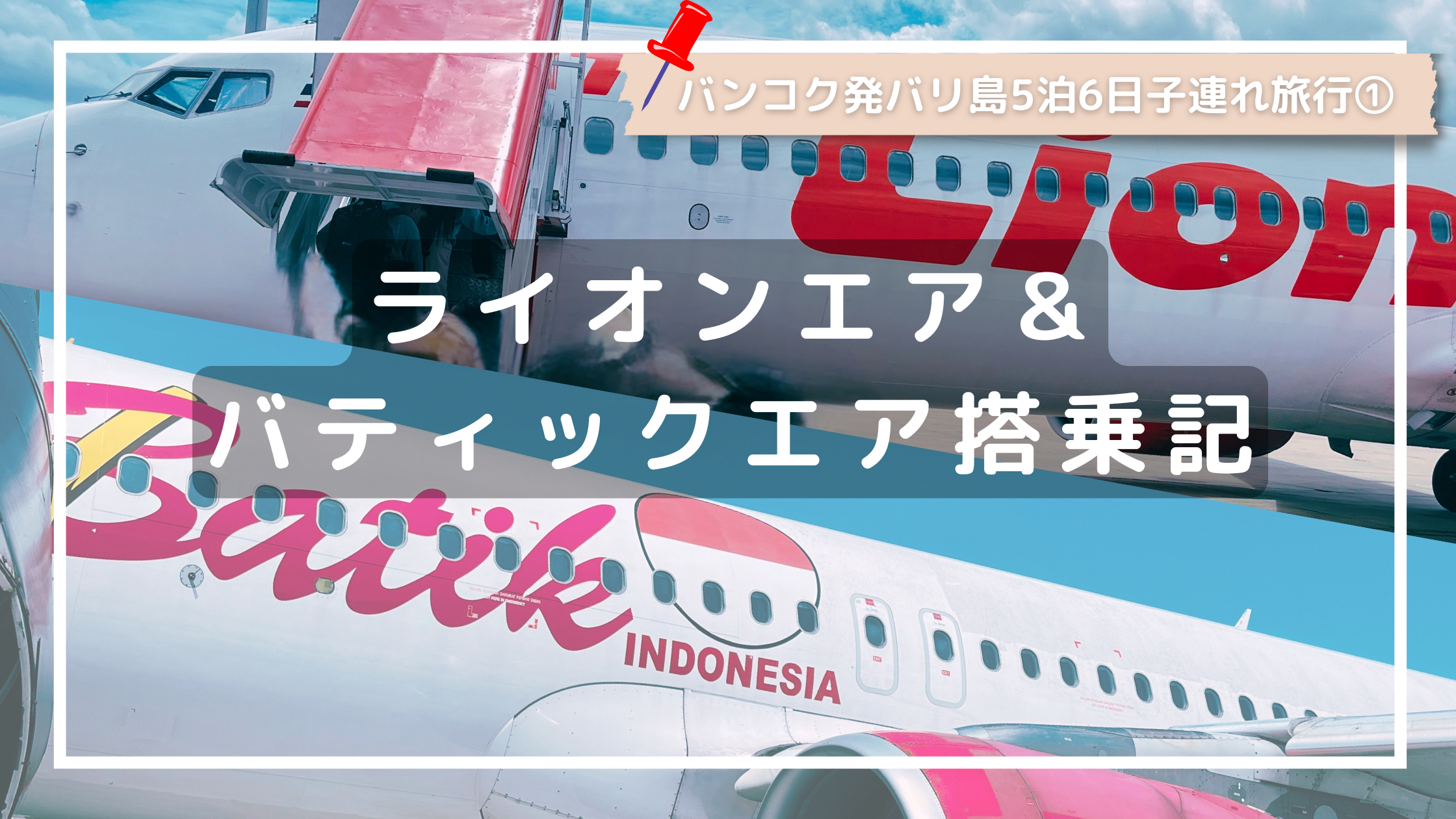 バンコクからバリまでは、フライト時間が約4時間半。直行便も複数あり、家族連れには移動時間の短さが重要なポイントです。今回は、往路にライオンエア(Lion Air)、復路にバティックエア(Batik Air)を利用。どちらもインドネシア系の航空会社で、グループ会社同士です。