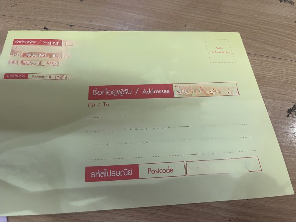今回はバンコクから日本(関東方面)へ送りましたが、投函から約6日後に無事到着しました。