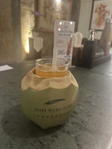 チェックイン時には素敵な容器でウェルカムドリンクのジュースをいただきました。