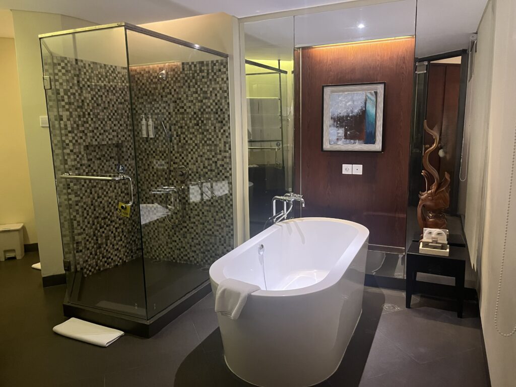 ・おしゃれバスタブはあるが、シャワーブースと分かれており、子連れにはやや不便
