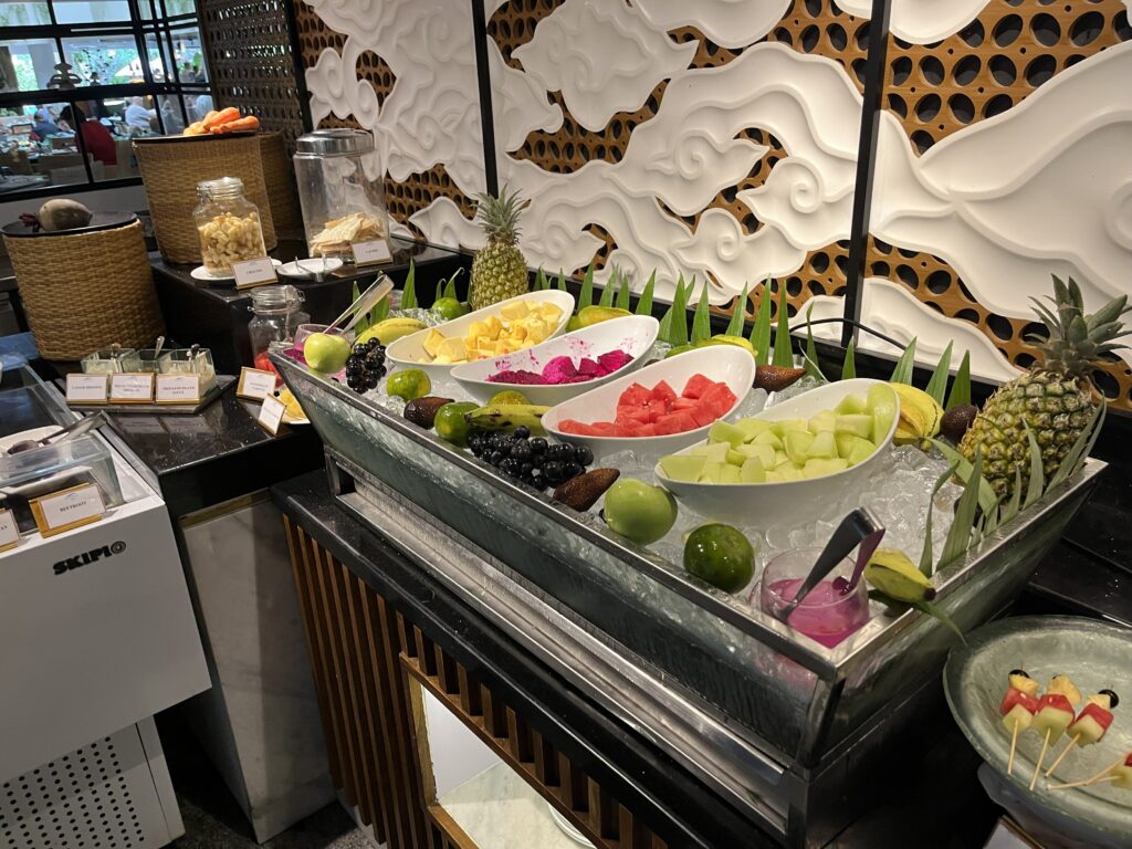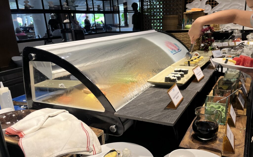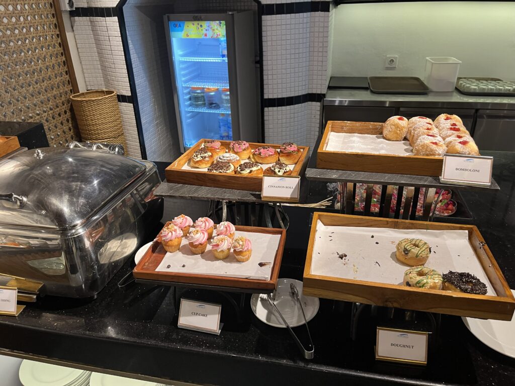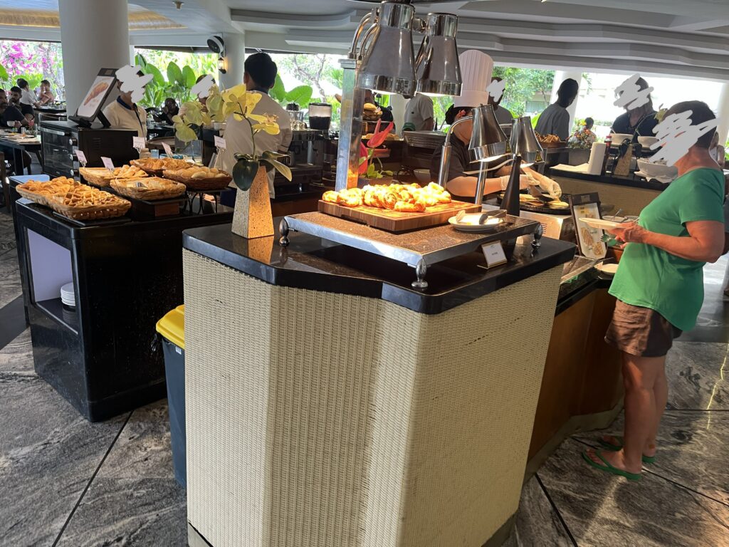 主に洋食・インドネシア料理ですが、そのほかインドカレー・お寿司など種類豊富に並んでいました。エッグステーションやフルーツ、スイーツコーナーなどもあり、毎日おなじ食事会場でも飽きませんでした。