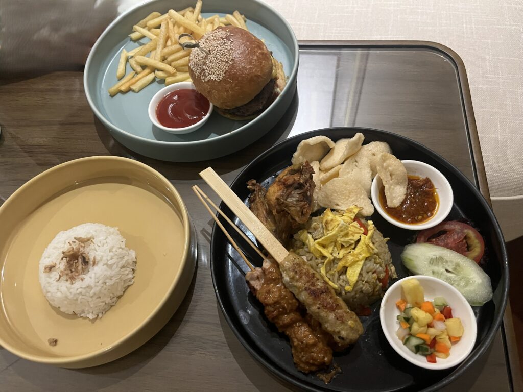 ハンバーガーとナシゴレンプレートです。どちらもとてもおいしかったです。