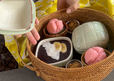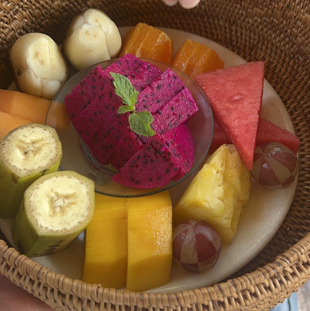 バリのメニューやフルーツが入った朝食をピクニックスタイルで楽しむことができます。