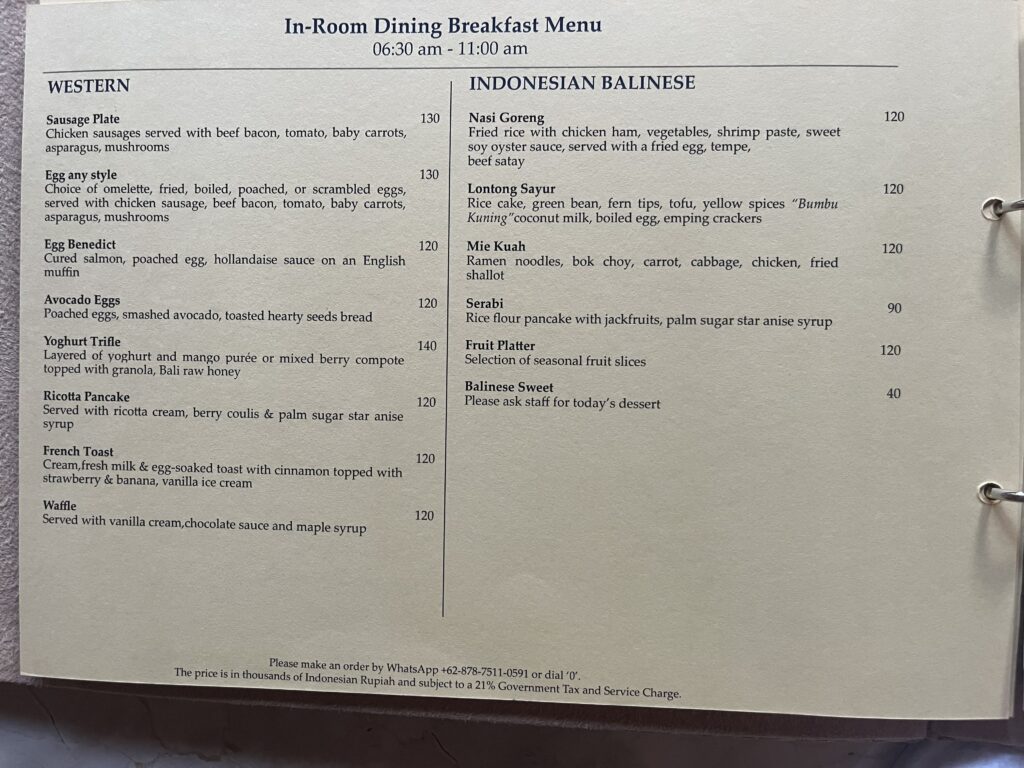 | 料金 | Rp 423,500/1名(税・サービス料込) |