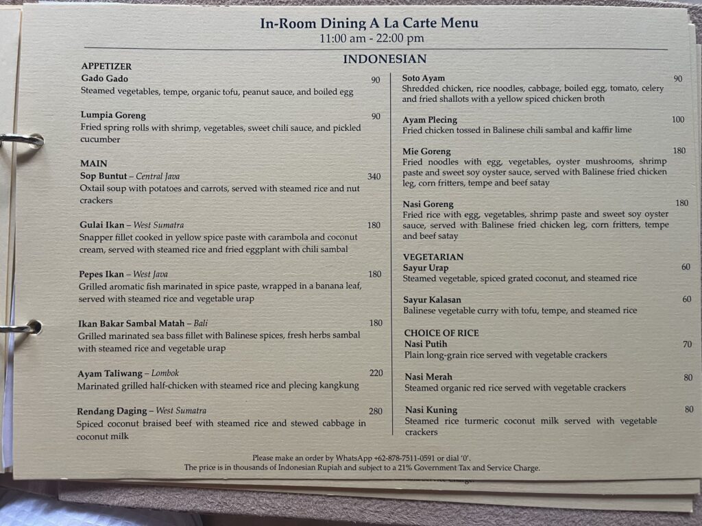 インルームダイニングのメニューも比較的種類が多く、どれもしっかり美味しかったです。
