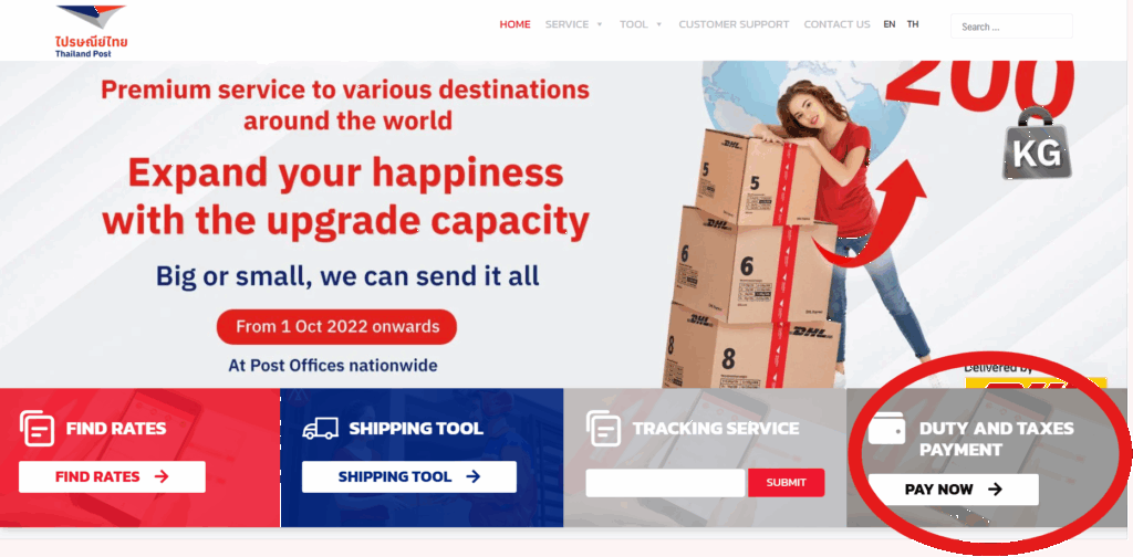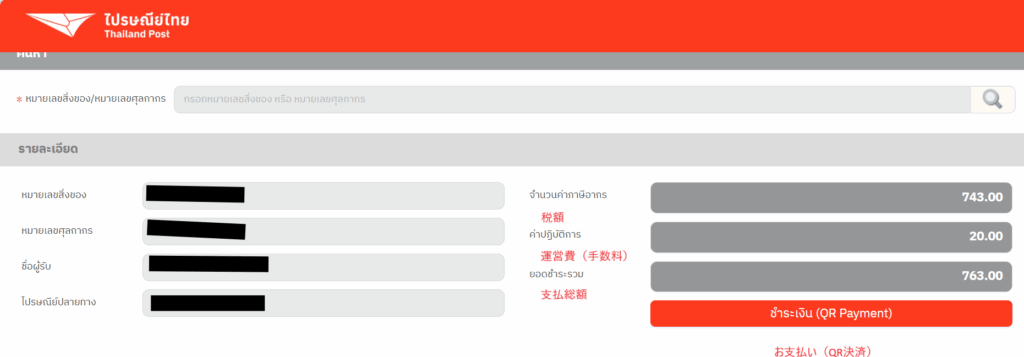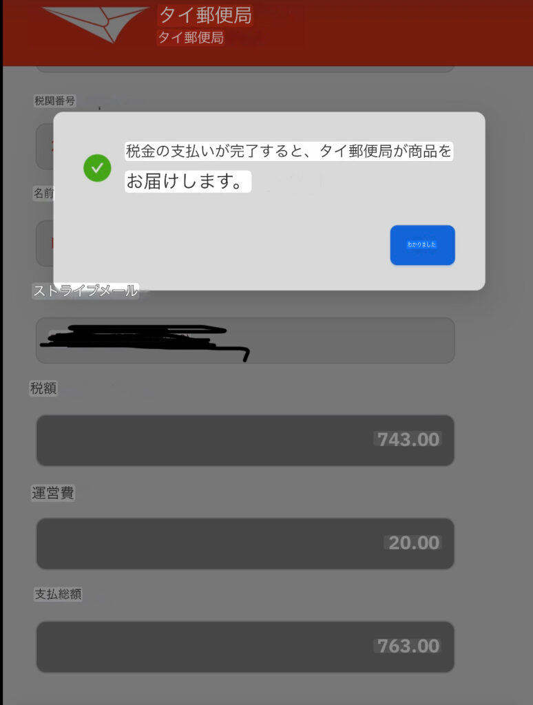 →「タイ郵便局が商品をお届けします」の表示が出る。